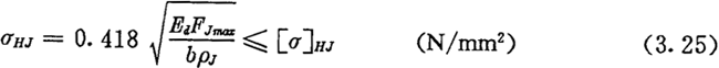 激波器與內(nèi)滾子的接觸,顯然是兩個(gè)圓柱體的相壓接觸,由彈性力學(xué)可知,在接觸處產(chǎn)生的最大接觸應(yīng)力σHJ可由下面的赫茲應(yīng)力公式來(lái)計(jì)算: