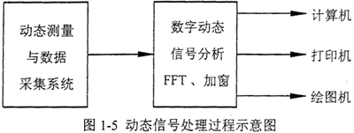 信號是動態(tài)測量和動態(tài)分析的對象。動態(tài)測量和動態(tài)分析的過程,實質上就是信號采集、轉換、存貯和處理的過程,廣義上屬于信息論的范疇。動態(tài)信號處理過程示意圖如圖1-5所示。