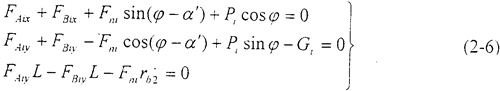 對作用于偏置環(huán)板上的平面力系,可列出靜力平衡方程: