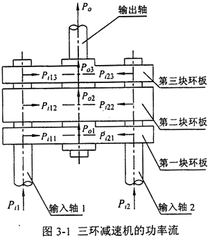 式中 Pi1,Pi2——兩根輸入軸上的輸入功率,Pi——三環(huán)減速機(jī)總輸入功率;