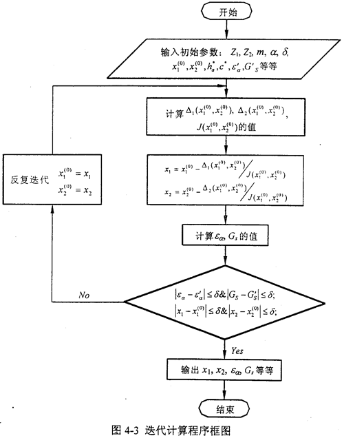 根據(jù)上述公式推導(dǎo),編制了迭代計(jì)算程序,程序框圖如圖4-3所示。