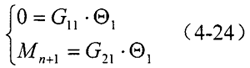 根據(jù)邊界條件,系統(tǒng)自由端狀態(tài)矢量中M=0,固定端Θ=0。代入式(4-23)得