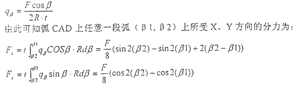力F的主方向是沿著切線方向,它通過主螺栓作用在疊片螺孔內(nèi)側(cè)弧CAD上,并按余弦規(guī)律分布,這樣可將表面力等效到相應(yīng)的節(jié)點(diǎn)上,設(shè)A為內(nèi)圈上一節(jié)點(diǎn)<AOX=β如圖(a ),