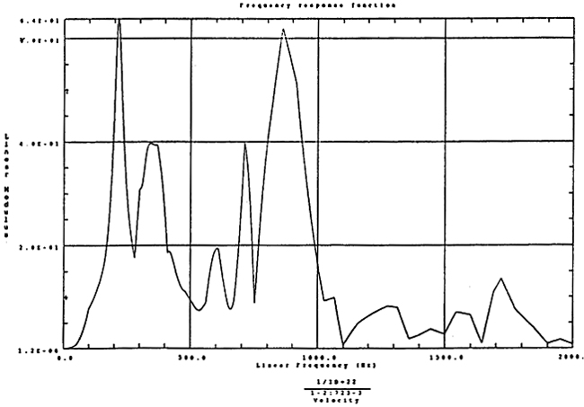 在第三章中我們已建立了三環(huán)減速器箱體的理論模型,在第四章中我們又計算了各種工況下,Ⅰ子模型對Ⅱ子模的激勵X(ω)的大小,這樣我們就可以使用SUN工作站上I—DEAS軟件中動態(tài)分析軟件來計算Ⅱ子模型表面的振動速度。