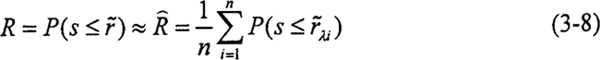 應(yīng)用數(shù)字仿真法求出零件的可靠度R,即在(O,1)內(nèi)產(chǎn)生均勻分布的隨機(jī)數(shù)作為閾值λ1,并利用式(3-7)計(jì)算此時(shí)零件的可靠度Rλi,在仿真次數(shù)n足夠大時(shí),零件的可靠度可表示為:
