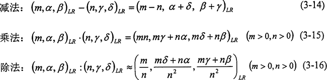 式(3-15)、(3-16)是近似的,嚴(yán)格地說,兩個(gè)L-R型模糊數(shù)葙乘或相除,其結(jié)果不再是L-R型模糊數(shù)。