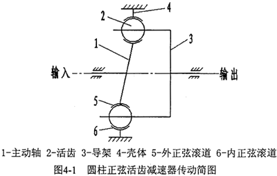 為分析圓柱正弦活齒傳動(dòng)系統(tǒng)的動(dòng)態(tài)特性,首先需要根據(jù)系統(tǒng)結(jié)構(gòu)建立其動(dòng)力學(xué)模型。圓柱正弦活齒傳動(dòng)的結(jié)構(gòu)簡圖如圖4-1所示。