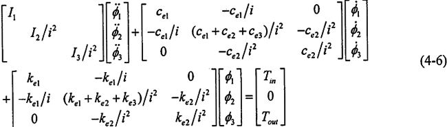 將式(4-5)用矩陣形式表達(dá),則系統(tǒng)的動(dòng)力學(xué)方程可寫為: