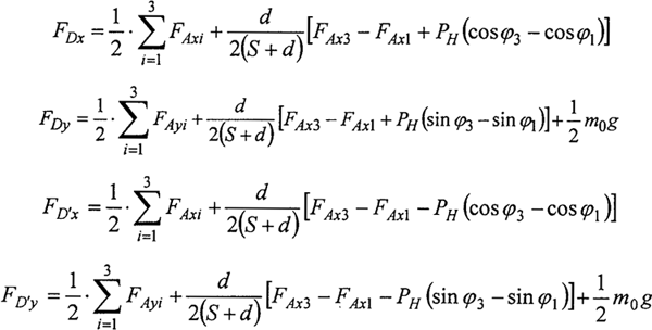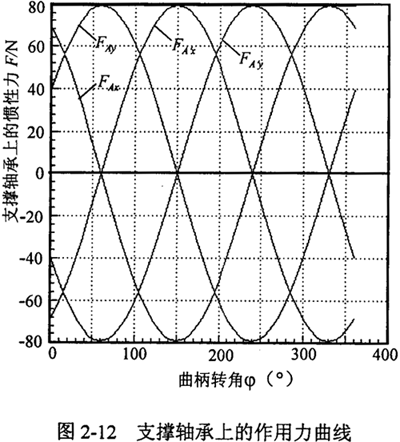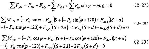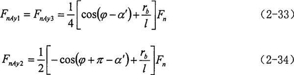 2.曲柄軸支撐軸承的作用力分析 根據(jù)力學原理,對于輸入同可得到下列方程式: