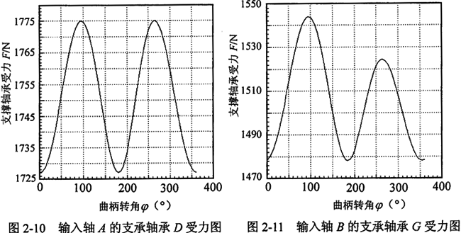 將上述方程中的A和D′換成B和G′,便得到了另一根曲柄軸的力和力矩方程。進而得到另一曲柄軸的支撐軸承的受力。