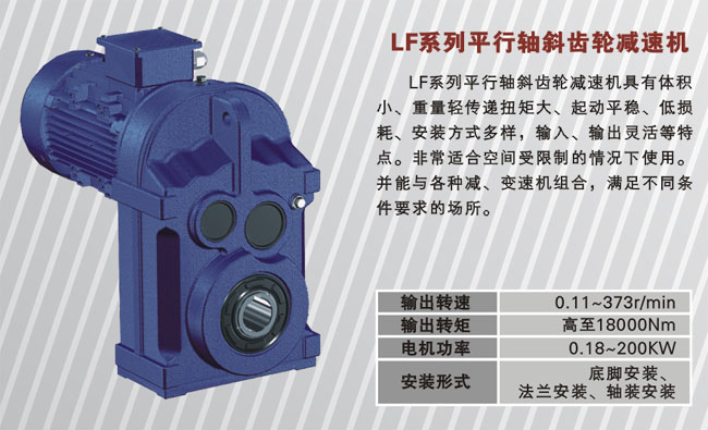 供應(yīng)LF系列平行軸斜齒輪減速機(jī)LF系列平行軸斜齒輪減速機(jī)具有體積小、重量輕傳遞扭矩大、起動(dòng)平穩(wěn)、低損耗、安裝方式多樣,輸入、輸出靈活等特點(diǎn)。非常適合空... 2011-4-13 |
