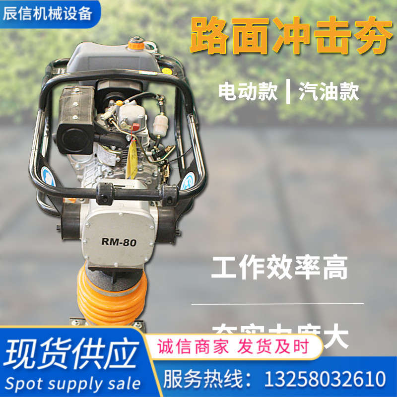 汽油沖擊夯用于公路、市政、電信、煤氣、供水、鐵路等部門(mén)對(duì)工程基礎(chǔ)和溝槽回填土的夯實(shí)。