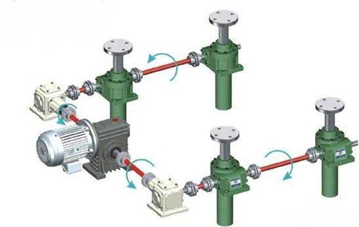 四臺聯(lián)動升降平臺,由四臺升降機,兩臺轉(zhuǎn)向箱,若干連桿,連軸器,一臺WP雙出軸減速機,一臺電機組合而成.屬于常用的H型結(jié)構(gòu)...