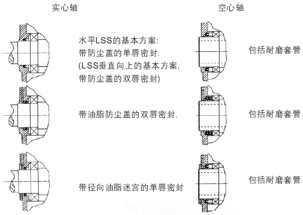 向軸上可供選擇的密封裝置: