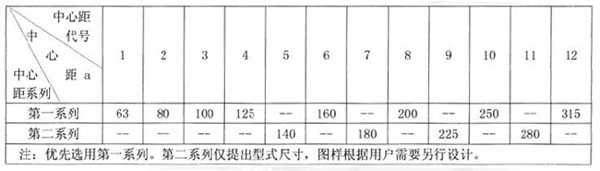 2.1 減速器型號用中心距表示,中心距及其代號見表1。