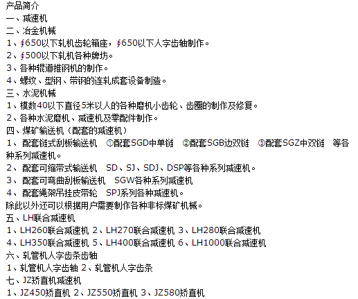 產(chǎn)品用于冶金、礦山、水泥、石油、化工、起重、運(yùn)輸、紡織、印染、郵電通迅、造紙等行業(yè)。產(chǎn)品為鞍鋼、本鋼、首鋼、五礦營(yíng)口中板廠、通遼電廠、撫順電廠等廠家配套選用。