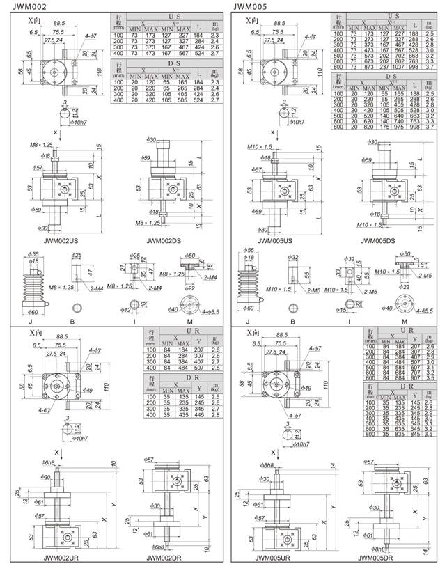 ![]() ![]() ![]() 四、JWM(梯形絲桿型)基本參數(shù)一覽表
